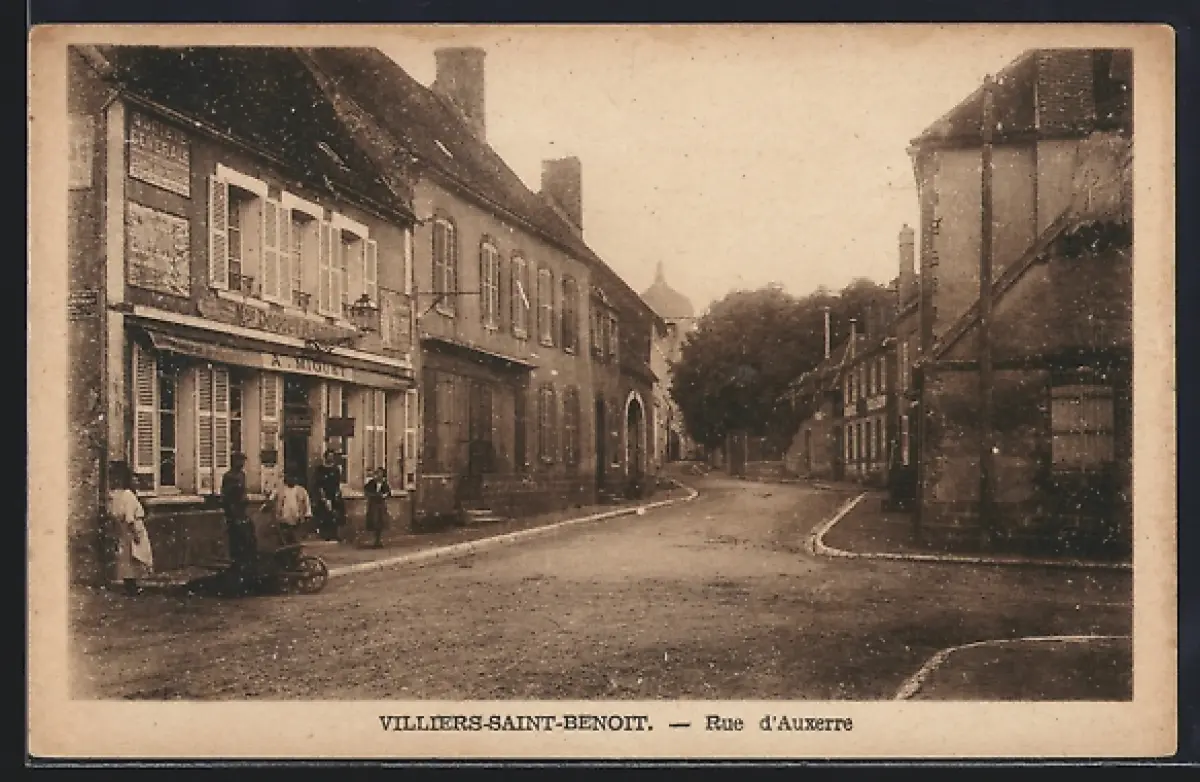 AK Villiers-Saint-Benoît, Rue d`Auxerre avec commerces et passants
