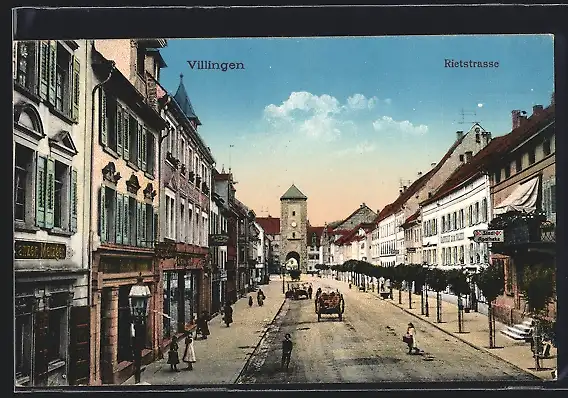AK Villingen / Schwarzwald, Rietstrasse mit Geschäften