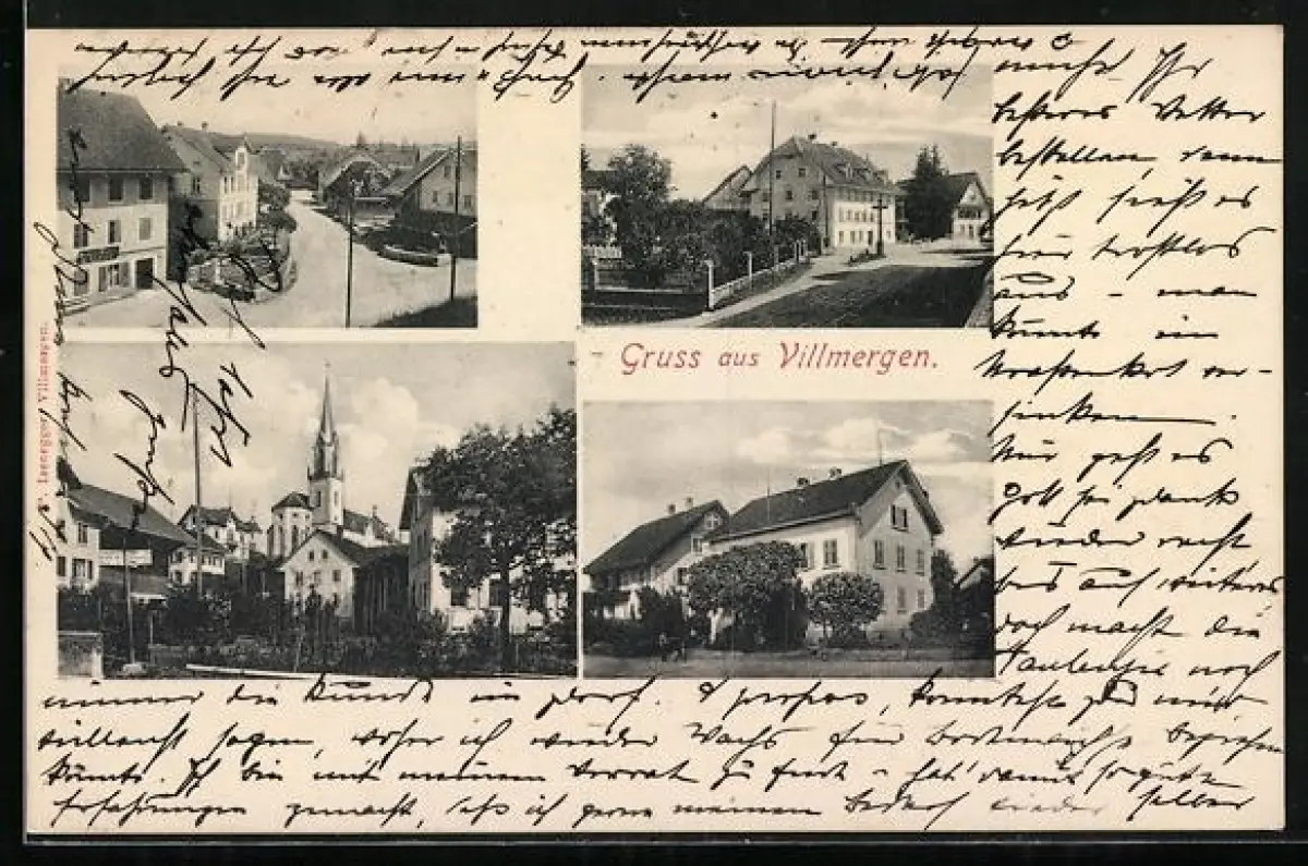 AK Villmergen, Strassenpartien, Ortspartie mit Kirche, Gebäudeansicht