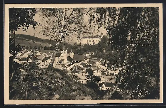 AK Vimperk / Winterberg i. B., Blick vom Wald auf die Stadt