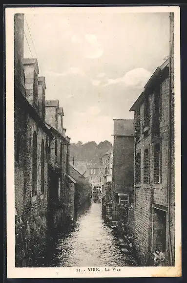 AK Vire, La Vire dans la vieille ville avec bâtiments anciens