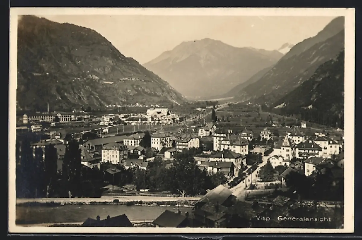 AK Visp, Generalansicht mit Strassenpartie