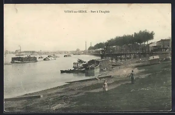 AK Vitry-sur-Seine, Port à l`Anglais avec barges sur la rivière Seine