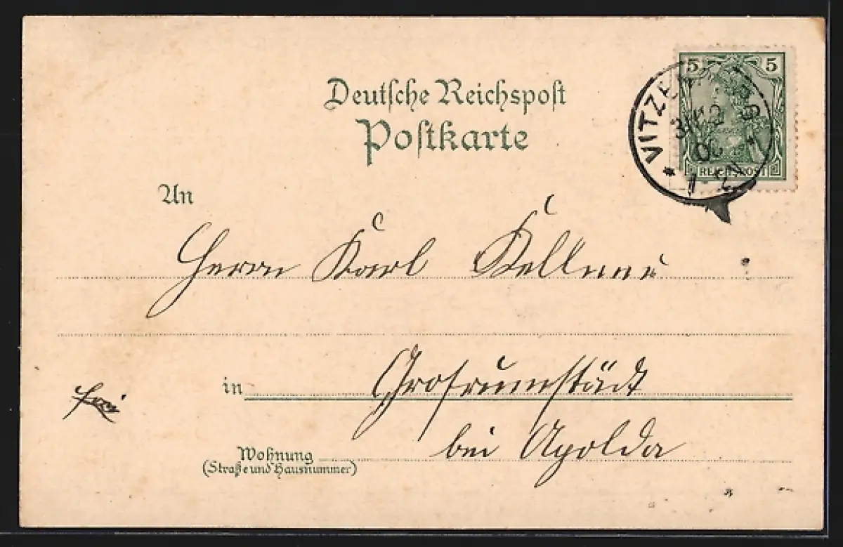 alte Ansichtskarte, gelaufen 1900, Eckknick re. oben, guter Zustand