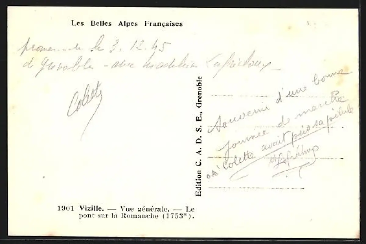 AK Vizille, Vue générale, Le pont sur la Romanche