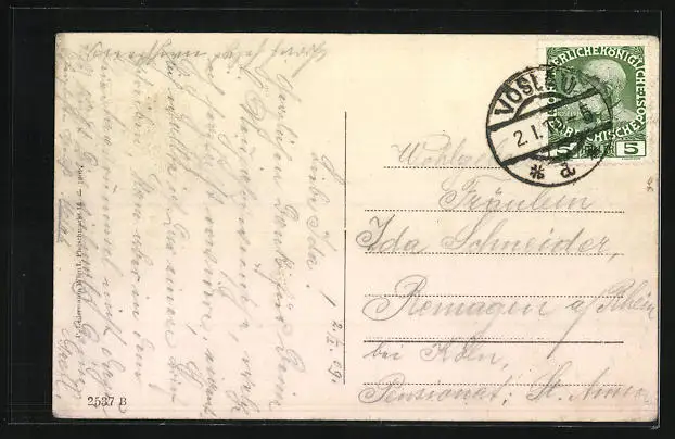 alte Ansichtskarte, gelaufen 1910, Eckknicke li. unten u. re. oben, Stempelspur, guter Zustand