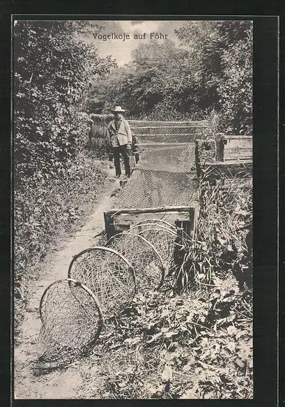 AK Vogelkoje auf Föhr, Fischer mit Fischreuse
