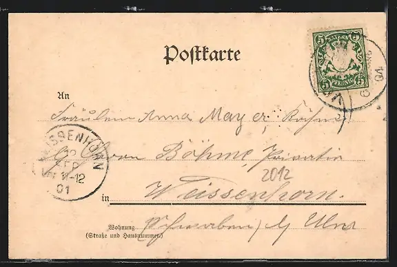 alte Ansichtskarte, gelaufen 1901, guter Zustand