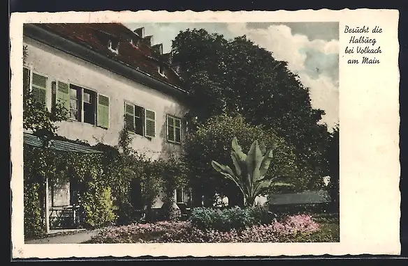 AK Volkach a. Main, Sommerfrische Schloss Halburg - Gartenansicht