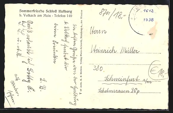 alte Ansichtskarte, gelaufen 1938, Briefmarke entfernt, guter Zustand