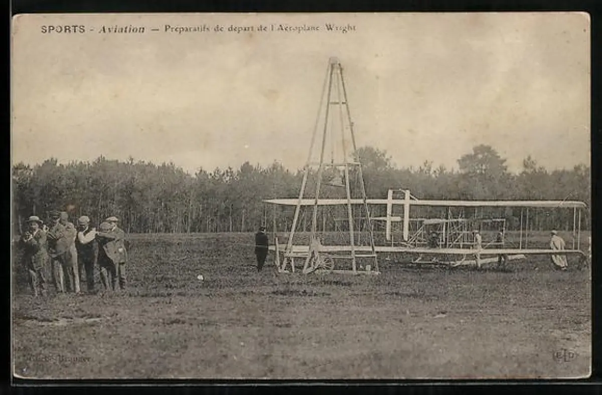 AK Vorbereitung für Start von einem Wright Doppeldecker-Flugzeug