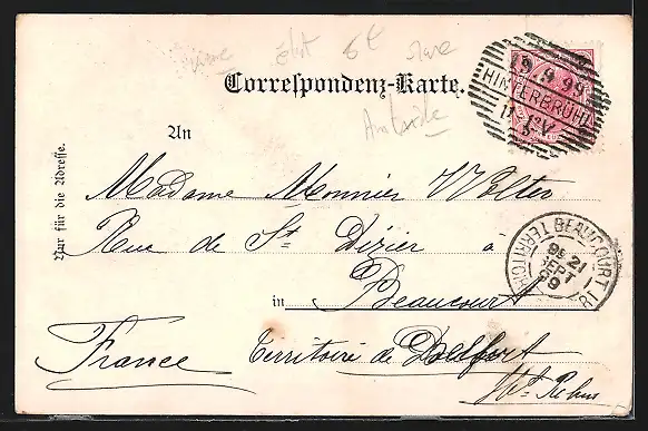 alte Ansichtskarte, gelaufen 1899, Eckknick li. unten, guter Zustand