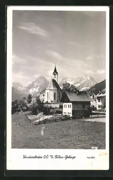 AK Vorderstoder, Kirche gegen Totengebirge