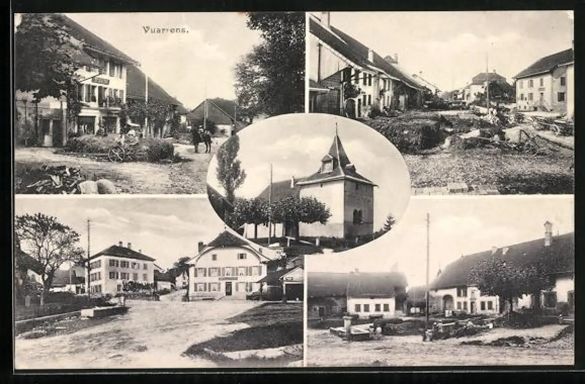 AK Vuarrens, Vue partielle, L`église, Epicerie A. Brot