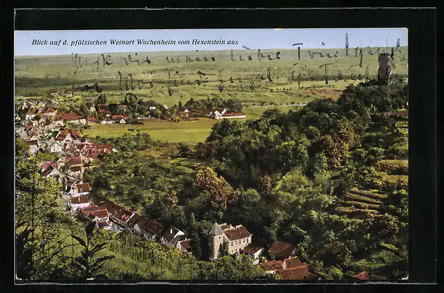 AK Wachenheim / Weinstrasse, Gesamtansicht mit Hexenstein