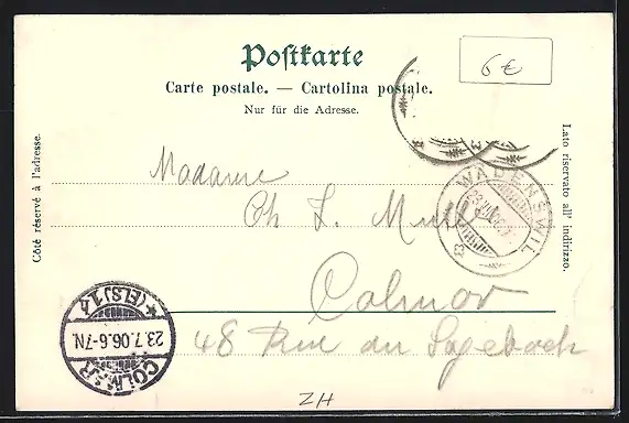 gelaufen 1906, Briefmarke entfernt, guter Zustand