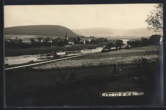 AK Wahmbeck a. d. Weser, Ortspartie mit Fluss und Dampfschiff