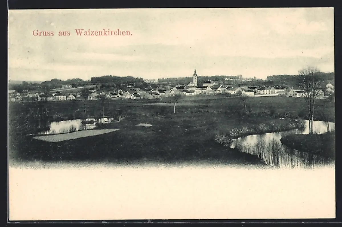 AK Waizenkirchen, Ortsansicht aus der Vogelschau