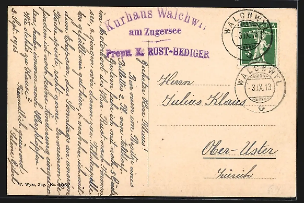 AK Walchwil, Kurhaus am Zugersee Rust-Hediger aus der Vogelschau