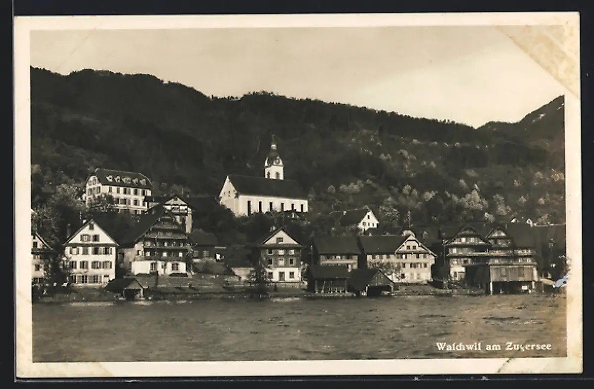 AK Walchwil am Zugersee, Uferpartie mit Kirche