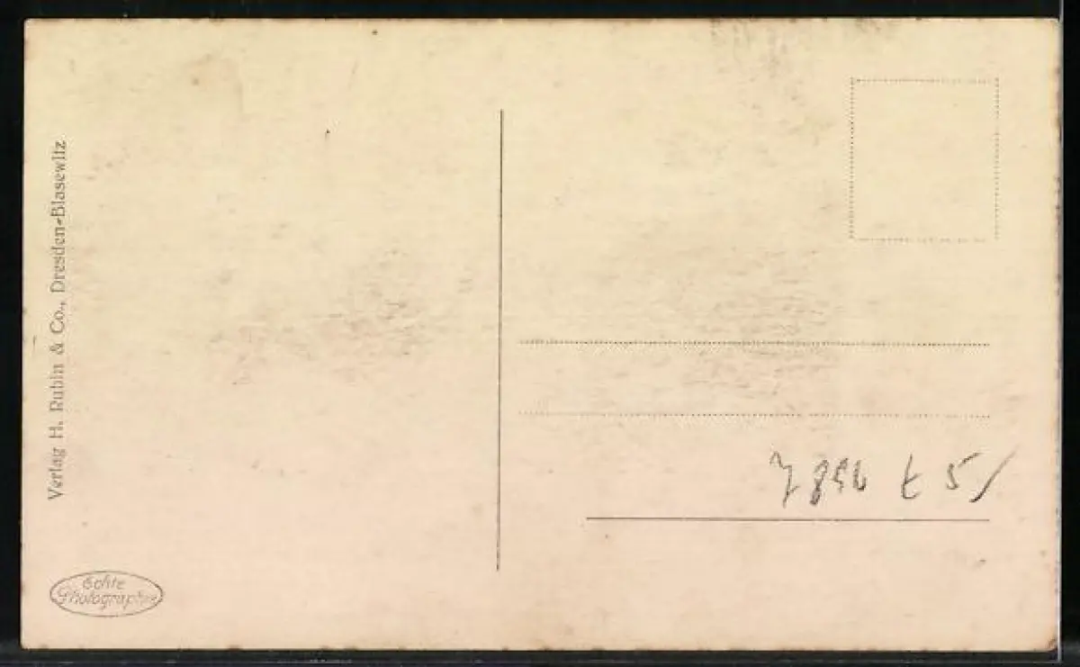 Personenbezogene Daten auf der Rückseite der Karte wurden durch blauen Textmarker unkenntlich gemacht. Die blauen Stellen sind auf die Vorderseite durchgeweicht und wirken sich negativ auf das Postkartenfoto aus