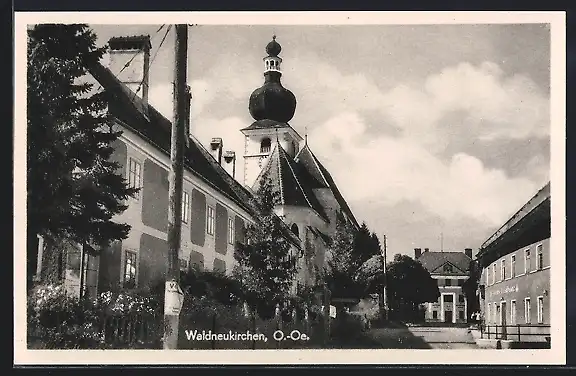 AK Waldneukirchen /O.-Oe., Strassenpartie mit Kirche
