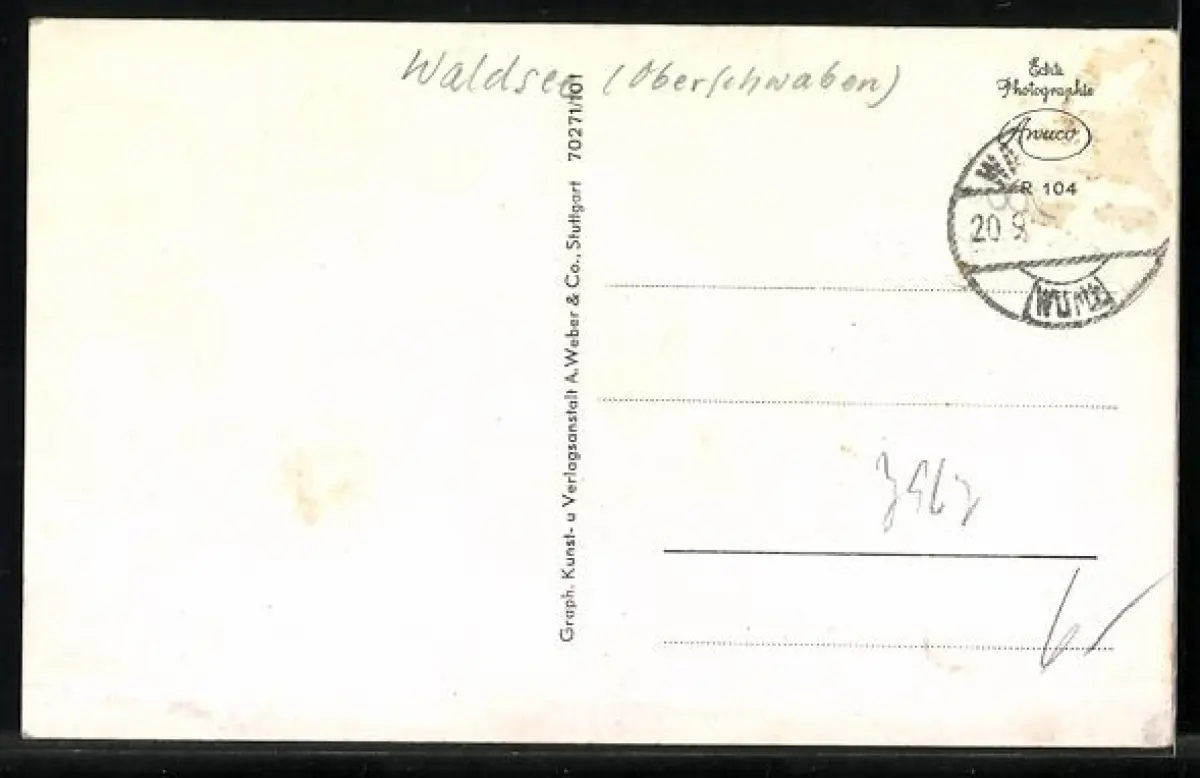 AK Waldsee / Württ., Stadtansicht mit See und Kirche