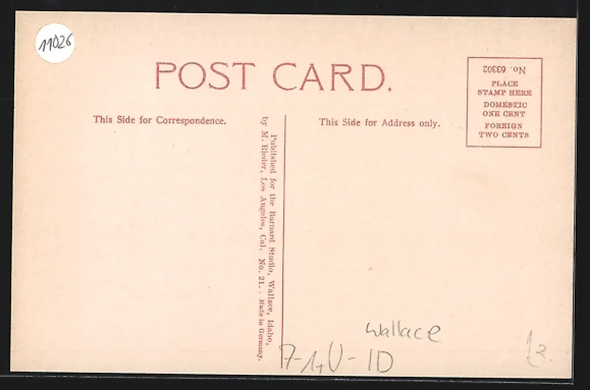 Personenbezogene Daten auf der Rückseite der Karte wurden durch blauen Textmarker unkenntlich gemacht. Die blauen Stellen sind auf die Vorderseite durchgeweicht und wirken sich negativ auf das Postkartenfoto aus