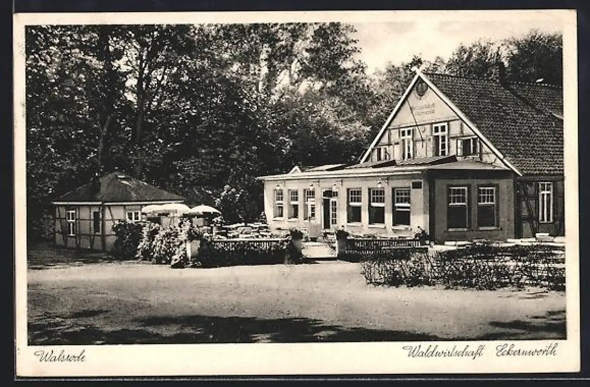 AK Walsrode, Gasthof Eckernworth, Blick auf das Gasthaus mit Terrasse