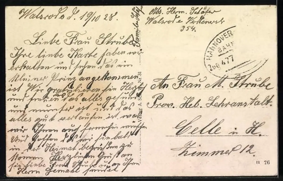 alte Ansichtskarte, gelaufen, Briefmarke entfernt, guter Zustand