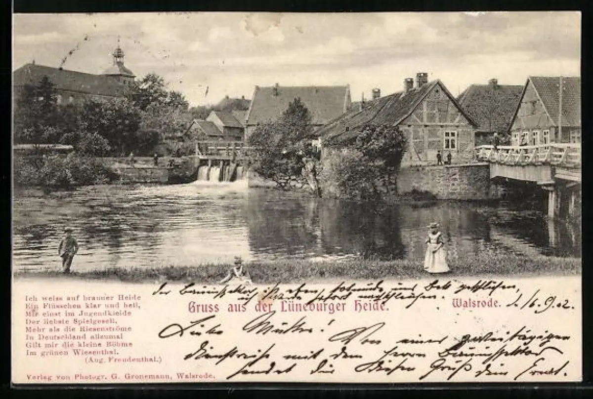 AK Walsrode /Lüneburger Heide, Flusslauf mit Brücke