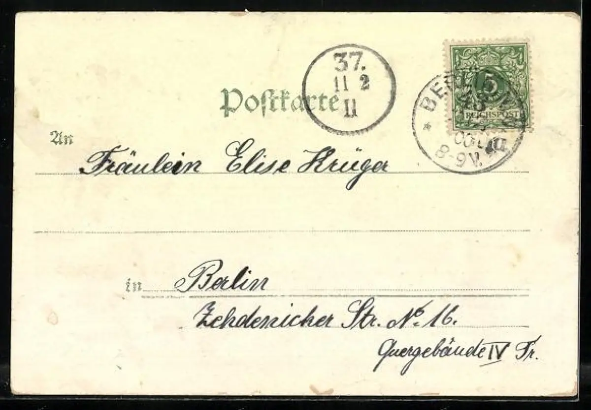alte Ansichtskarte, gelaufen 1900, guter Zustand