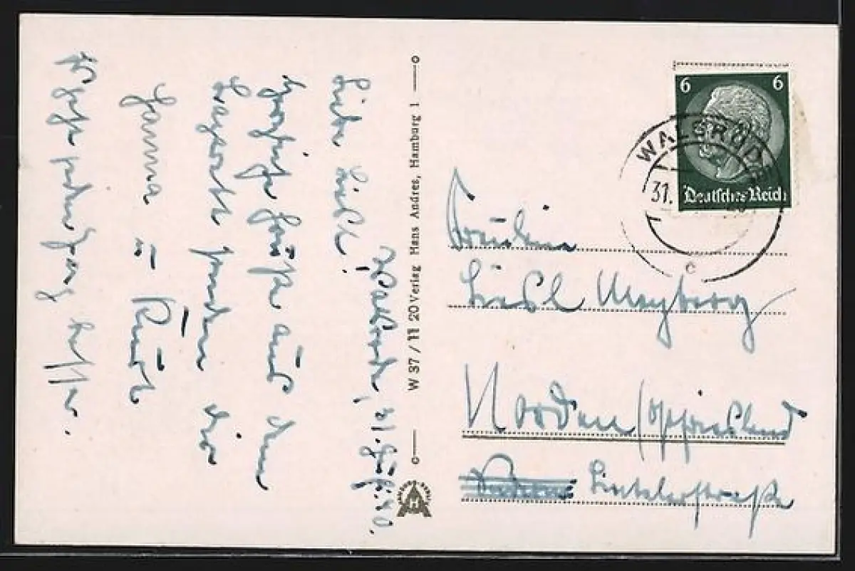 alte Ansichtskarte, gelaufen 1940, Albumspuren, guter Zustand