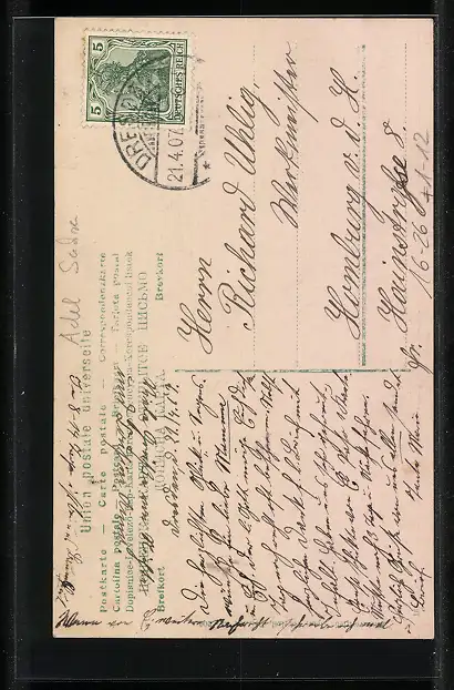 alte Ansichtskarte, gelaufen 1907, guter Zustand