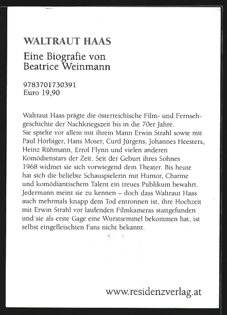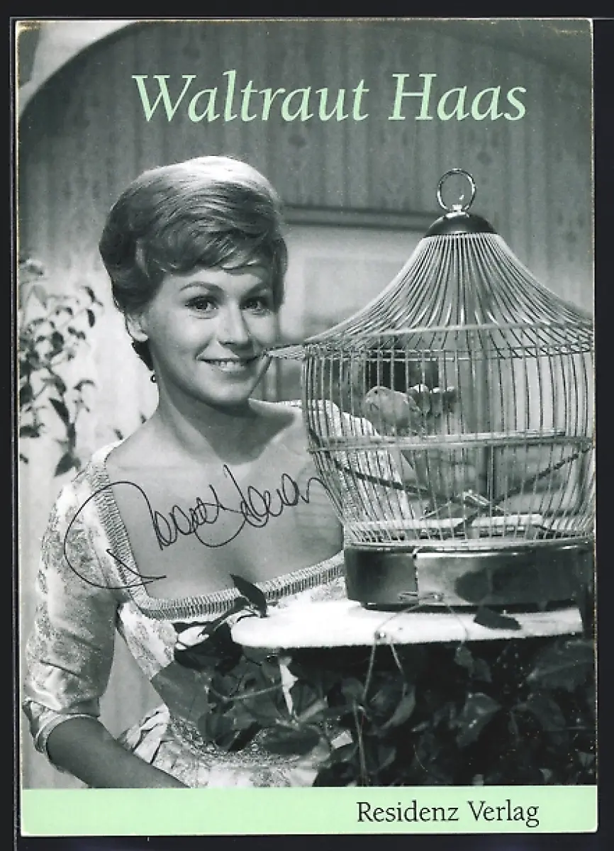 AK Waltraud Haas mit einem Vogelkäfig, Autograph