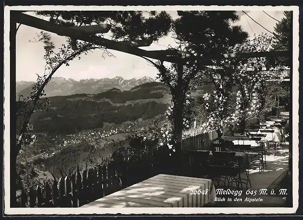 AK Walzenhausen, Gasthaus Meldegg, Blick in den Alpstein