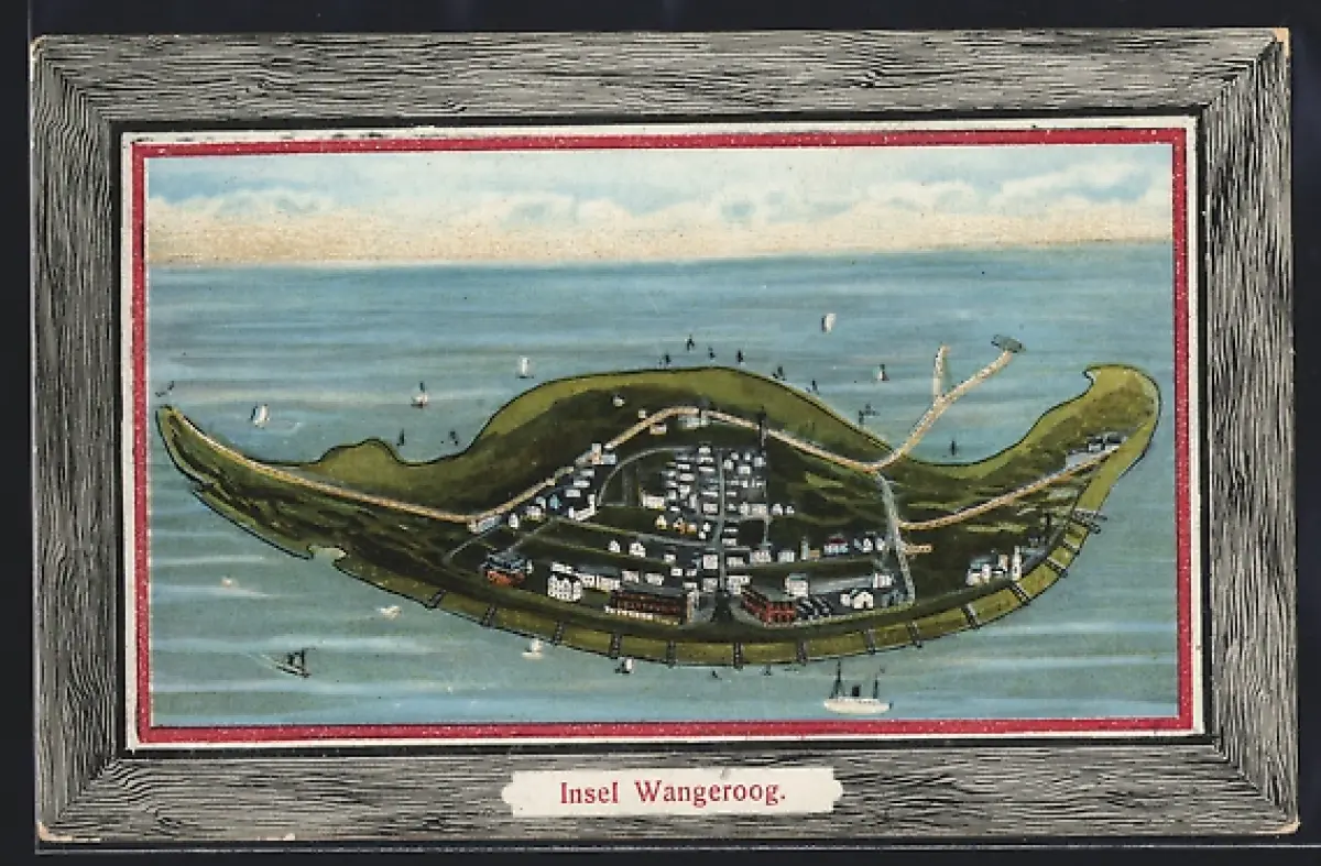 AK Wangerooge, Ansicht der Insel Wangerooge im Passepartout
