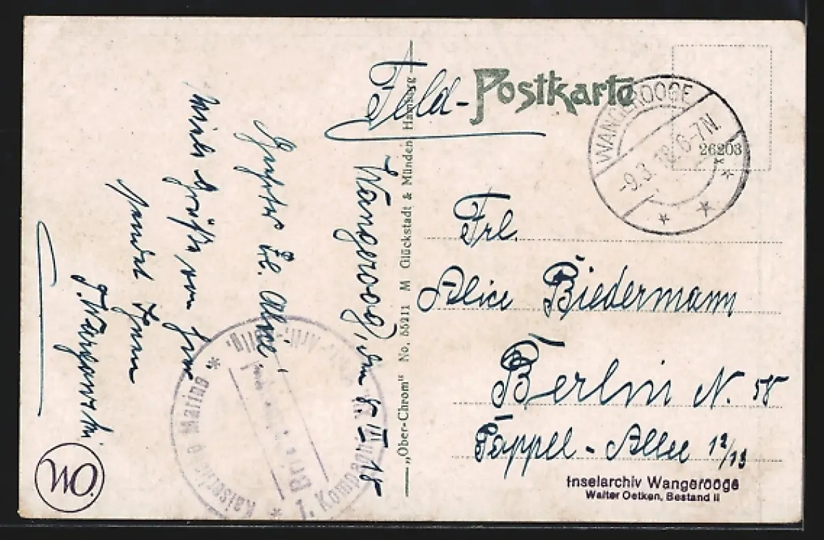 gelaufen 1918 als Feldpost, Stempelspur, guter Zustand