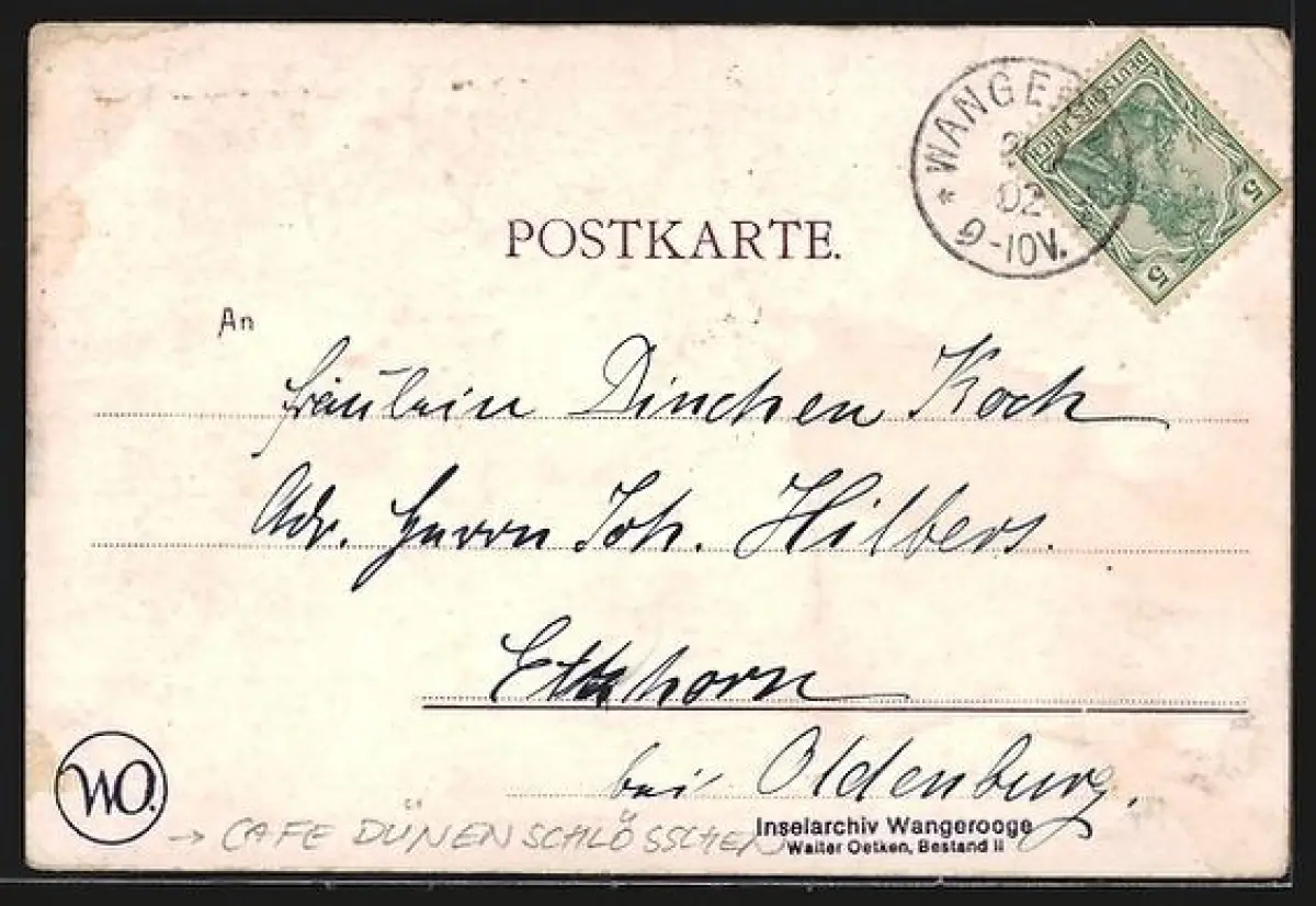 alte Ansichtskarte, gelaufen 1902, Bugspur links oben, Eckknick links oben, sonst guter Zustand