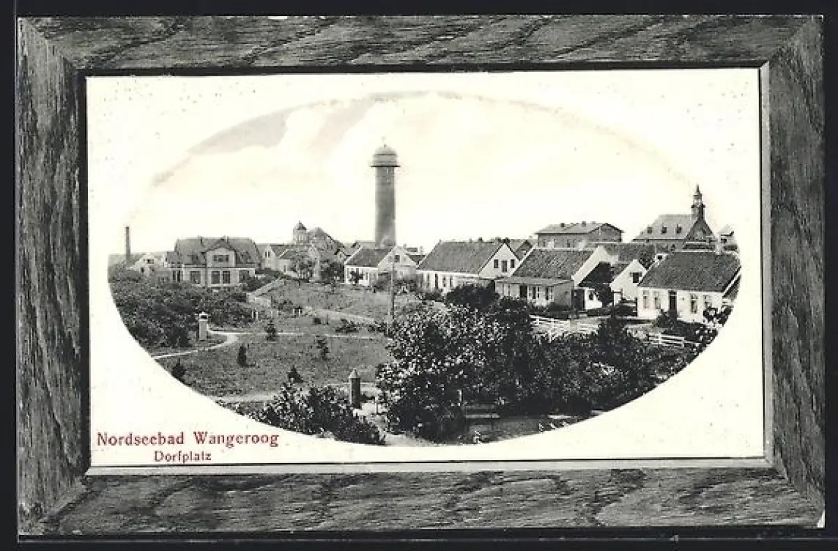 AK Wangerooge, Dorfplatz und Blick zum Leuchtturm