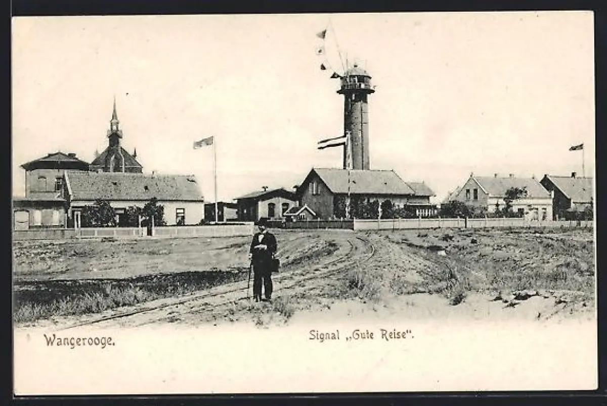AK Wangerooge, Flaggensignal Gute Reise am Leuchtturm