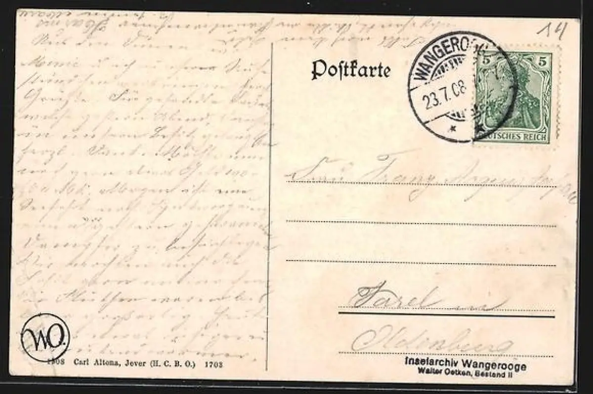 gelaufen 1908, Eckknick unten rechts, guter Zustand