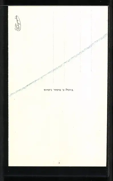 Personenbezogene Daten auf der Rückseite der Karte wurden durch blauen Textmarker unkenntlich gemacht. Die blauen Stellen sind auf die Vorderseite durchgeweicht und wirken sich negativ auf das Postkartenfoto aus