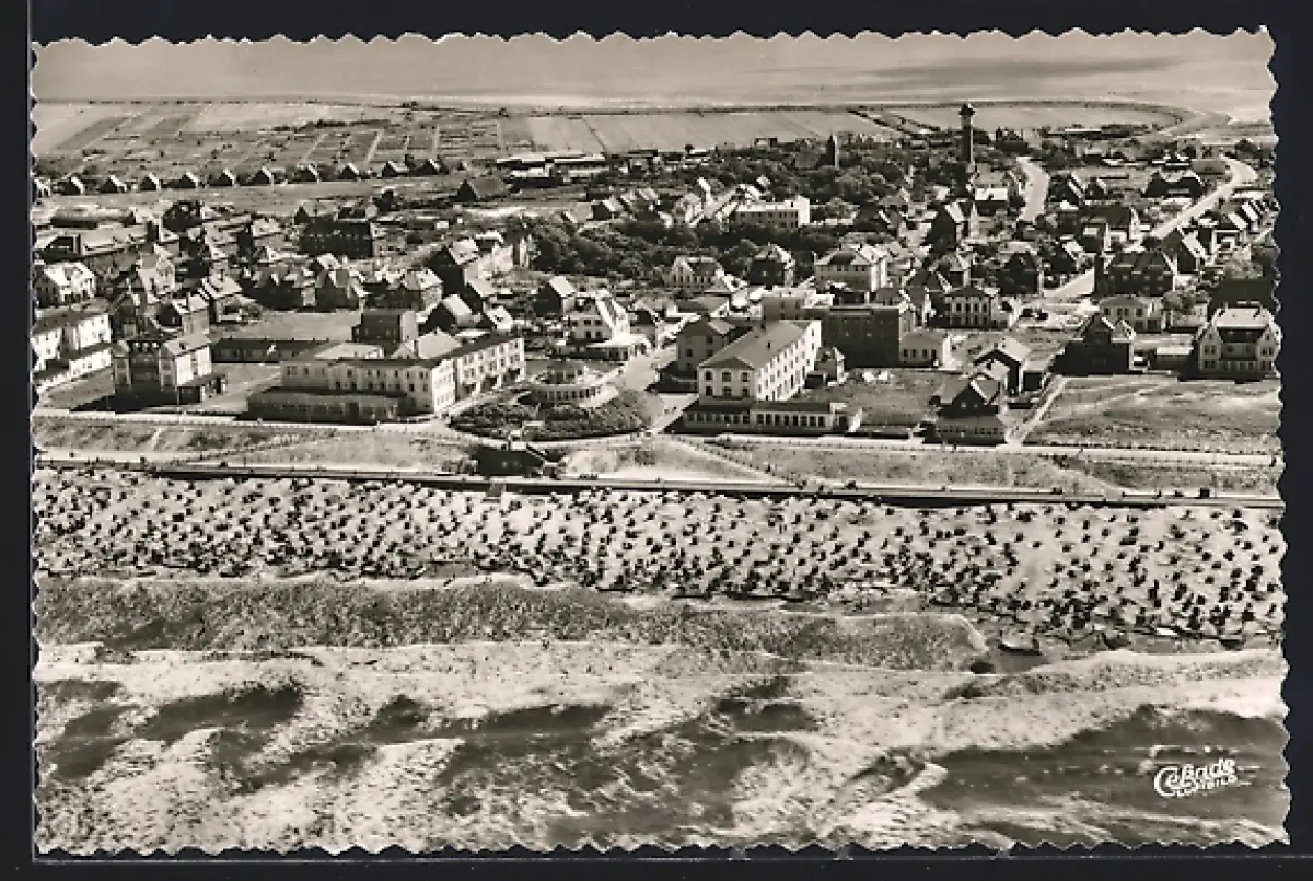 AK Wangerooge, Ort, Strand, Leuchtturm, Fliegeraufnahme