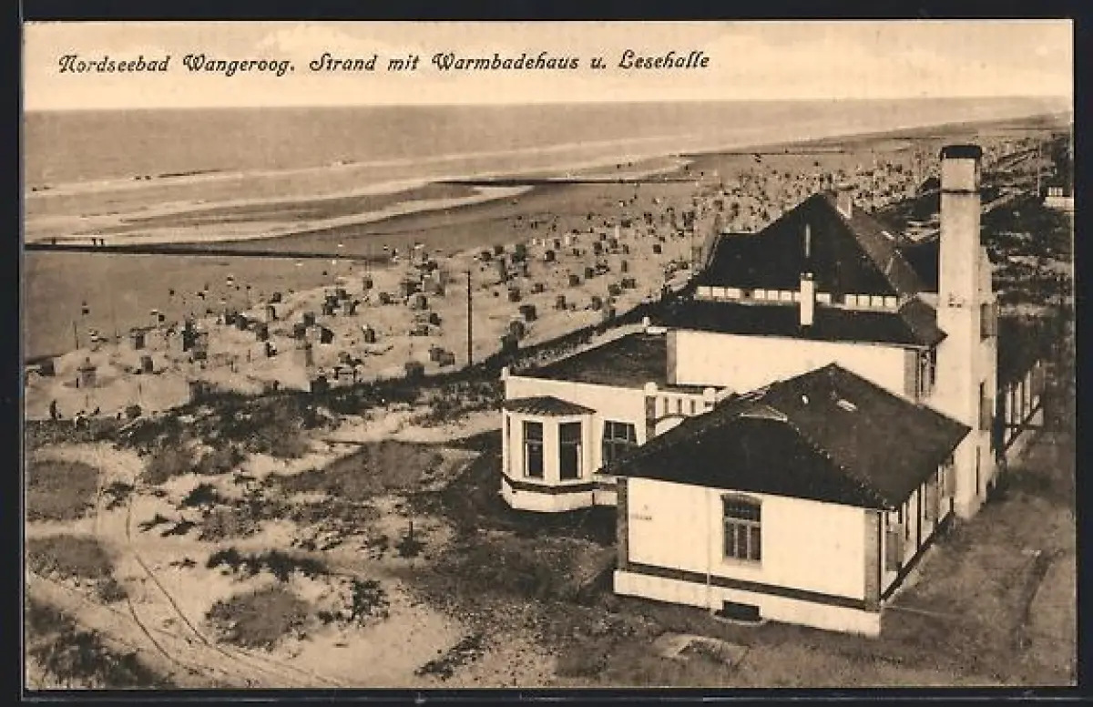 AK Wangerooge, Strand mit Warmbadehaus, Lesehalle