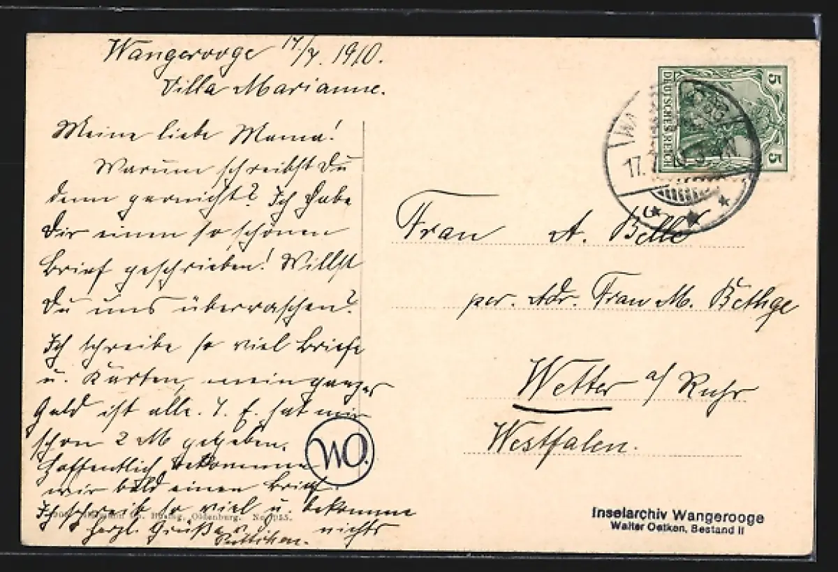 alte Ansichtskarte, gelaufen 1910, guter Zustand