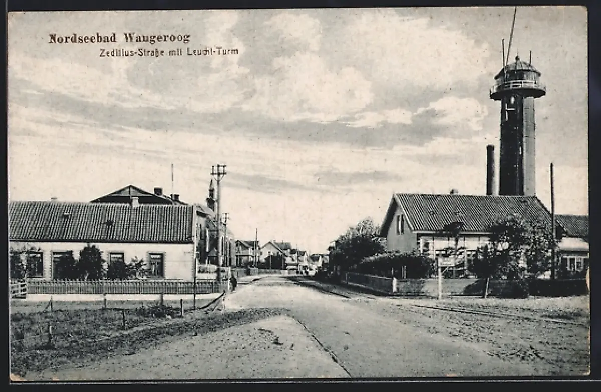 AK Wangerooge, Zedilius-Strasse mit Leuchtturm