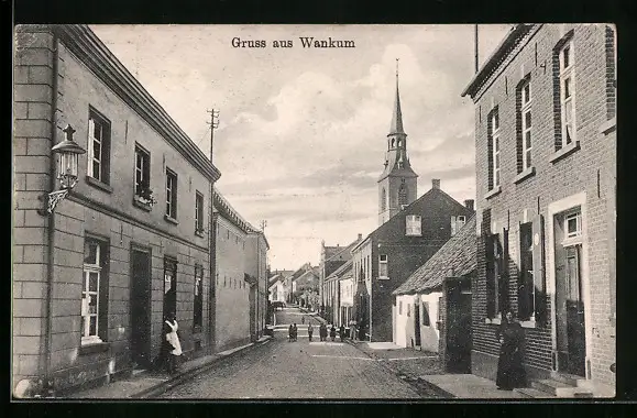 AK Wankum, Strassenpartie im Ort, Kirchturm