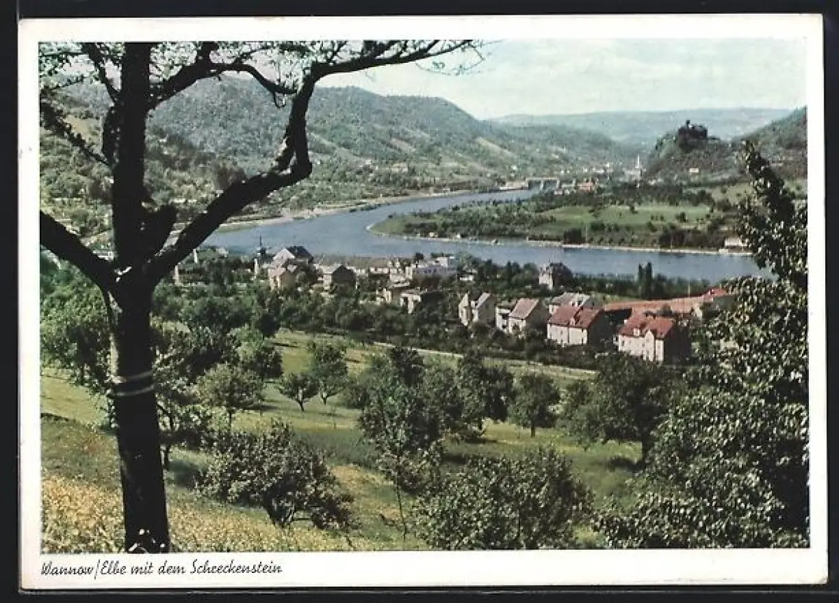 AK Wannow /Elbe, Teilansicht mit dem Schreckenstein