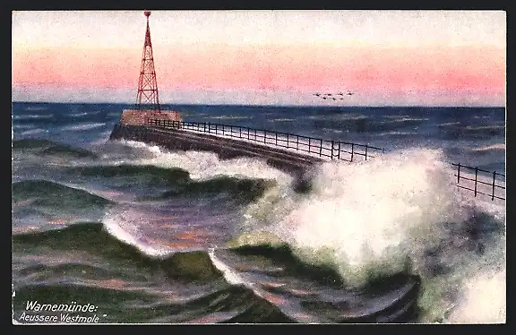AK Warnemünde, Äussere Westmole bei stürmischer See